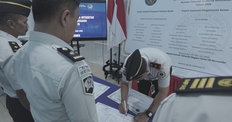 Wonosobo - Rumah Tahanan Negara (Rutan) Kelas IIB Wonosobo melaksanakan kegiatan Penandatanganan Dokumen Komitmen Bersama dan Pakta Integritas Tahun 2026 pada Selasa, 3 Januari 2026, bertempat di Aula Sikunir Rutan Kelas IIB Wonosobo.