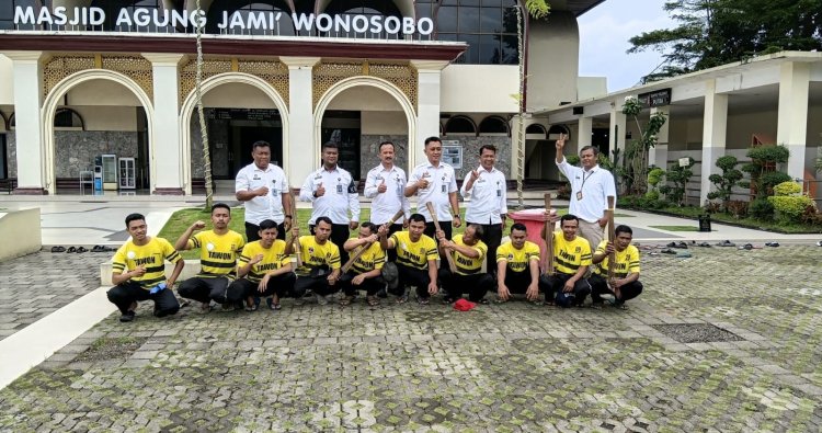 Wonosobo - Menjelang datangnya bulan suci Ramadan, Rumah Tahanan Negara (Rutan) Wonosobo menggelar kegiatan bakti sosial yang melibatkan warga binaan bersama jajaran pegawai Rutan Wonosobo dengan membersihkan Masjid Agung Jami Wonosobo dan area sekitarnya, Selasa (18/02/2026).